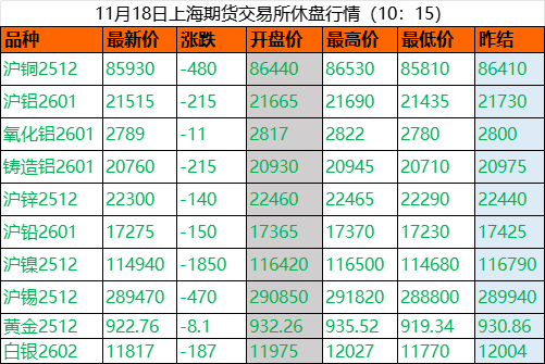 空头避险:镍(高库存压制)、铝(需求淡季叠加宏观压力);