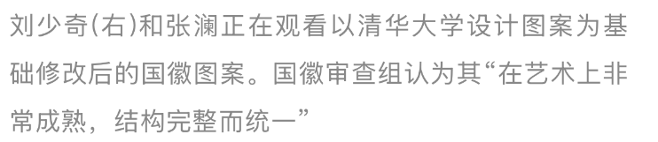 开国大典举行之后,刚刚成立的中央人民政府马上委托中央美术学院成立了国徽设计小组,由张仃、周令钊等几位美术家组成。另外,因为清华大学林徽因等人的国徽设计图案相比之下较好,因此在周恩来的提议下,在清华大学营建系也成立一个国徽设计小组,由梁思成任主任。